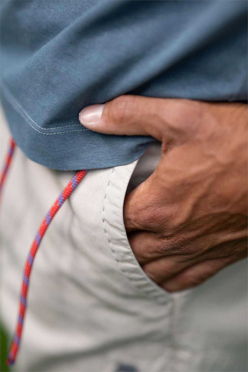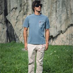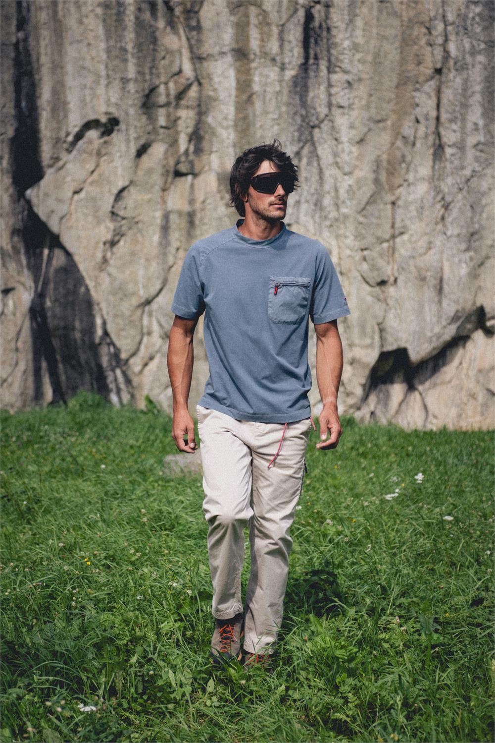 Tailored Pant – Il pantalone artigianale italiano incontra la funzionalità dell’outdoor Il Tailored Pant di Avista unisce il design e l'attenzione ai dettagli dei pantaloni sartoriali italiani con le esigenze del mondo outdoor e del climbing. Questo capo unico nel suo genere porta lo stile e la costruzione artigianale su roccia, offrendo eleganza e performance senza compromessi. Il taglio sartoriale italiano è stato reinterpretato con un fit moderno e adatto all’outdoor. Realizzato in cotone resistente ed elastico, garantisce un’eccezionale libertà di movimento, grazie a dettagli tecnici come il cuneo sottogamba, progettato per movimenti ampi e laterali, il ginocchio articolato con pence aperte e le due riprese posteriori, che riducono il volume e l’ingombro nei movimenti. La vita è elasticizzata internamente e articolata per adattarsi perfettamente al corpo, rifinita in modo sartoriale tramite un bordino chiuso a punto filza e uno spacchetto posteriore. Il comfort e la pulizia del design sono accentuati da un pannello interno che copre la patta e la cucitura sul cavallo. La chiusura della vita prevede un doppio bottone frontale e un cordino in Kevlar da arrampicata utilizzato come cintura e regolabile tramite una placchetta minimale. Il cordino è tenuto in posizione da una doppia apertura nei passanti che gli impediscono di risalire anche quando il pantalone è indossato oversize. Sono presenti due tasche frontali e due tasche posteriori a filetto con tondino ribattuto, mentre il fondo del pantalone è regolabile in due posizioni tramite un bottone automatico, permettendo di gestire l'ampiezza secondo le proprie preferenze. Tutte queste caratteristiche permettono di indossare il pantalone con un fit più slim o oversize senza comprometterne la vestibilità. E come firma distintiva di Avista, l'iconica asola a forma di chiodo d’arrampicata, che racchiude la zip sulla coscia sinistra.